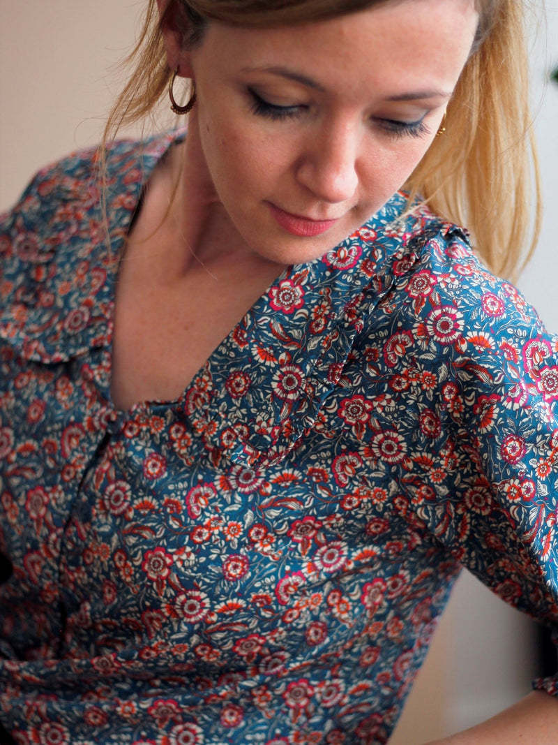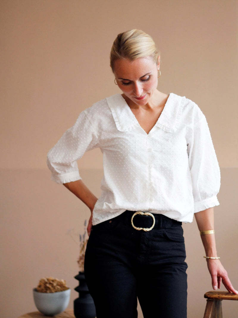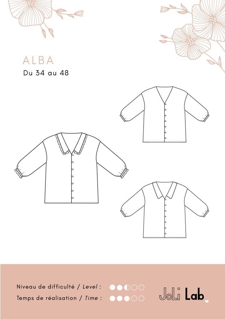 Alba est une blouse bohème et romantique, au décolleté plongeant mis en avant par un large col, avec ou sans volant. Ses manches bouffantes aux détails féminins lui apportent du caractère et en font une pièce ultra-désirable. Alba vous permettra de réaliser 3 encolures et 2 finitions de manche différentes. (niveau estimé : 3/5).