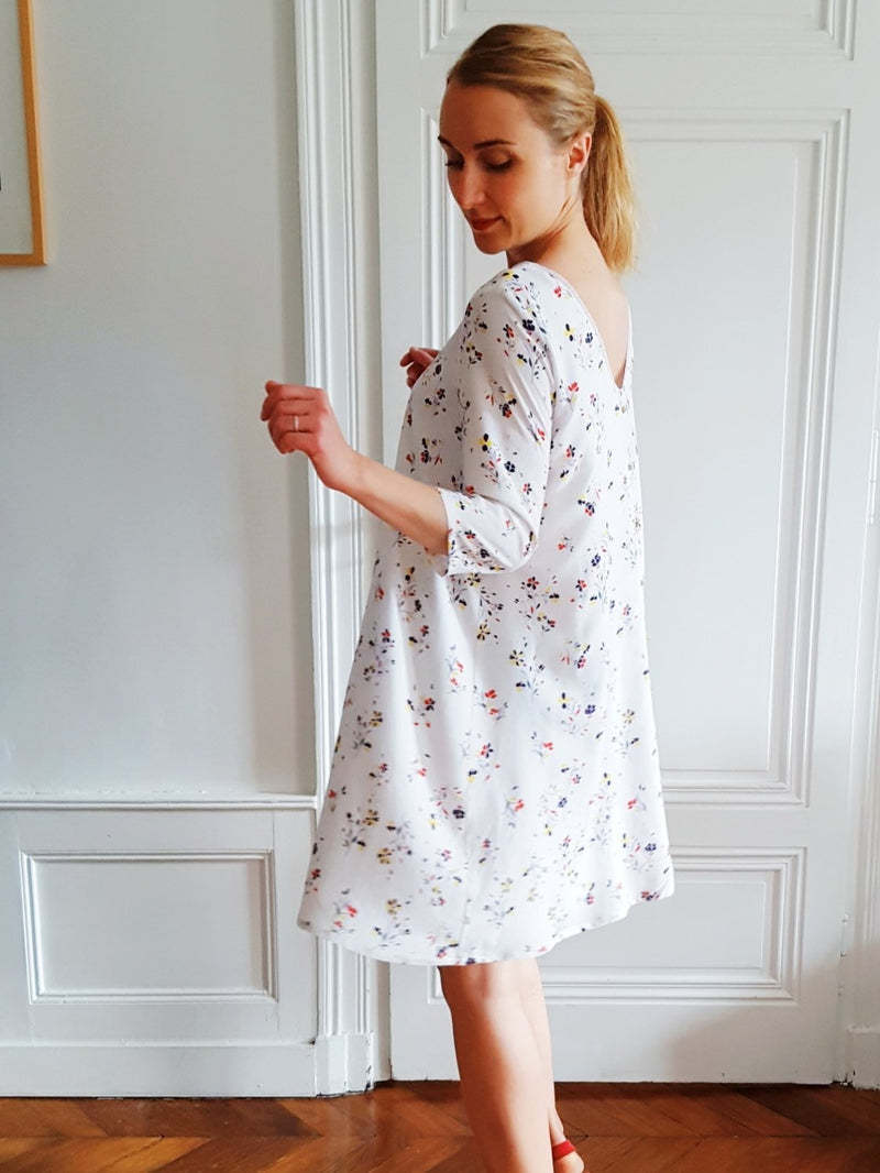 Poppy se décline en deux longueurs : robe courte ou blouse. Vous pourrez également choisir entre deux options pour les manches :