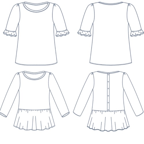 Un t-shirt en jersey aux jolis détails et multiples options : manches froncées, basque, patte de boutonnage dans le dos… De quoi créer son t-shirt idéal, du plus simple au plus travaillé pour un style versatile et personnel