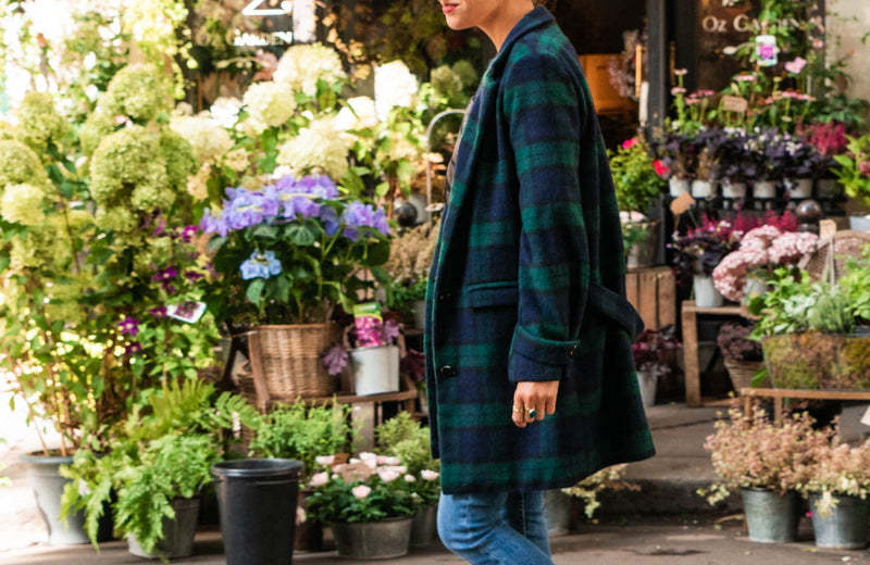 Les jolis détails : boutonnage rabaissé pour plus de modernité, une martingale dans le dos, le choix entre des poches plaquées ou passepoilées à rabat, une coupe ajustée mais pas étriquée, et surtout, le fameux détail qui change tout : un travail de pli sur la manche, retenu par une bride boutonnée.