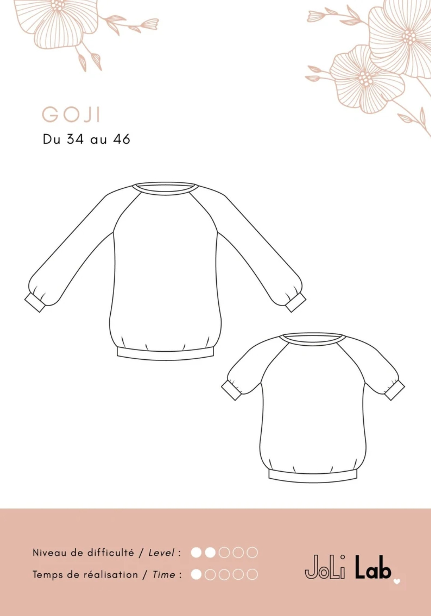 Goji c’est un peu notre sweat idéal, cosy avec une petite touche d’élégance, celui qu’on a envie de porter en toute saison pour se sentir belle sans effort. Forme raglan, col rond et bas de manches bouffants, il donnera la touche stylée qu’il manquait à vos tenues décontractées. Dans sa version raccourcie (ou crop), il se mariera à merveille avec vos jupes et pantalons taille haute. Goji est enfin très facile et rapide à coudre(niveau 2/5).