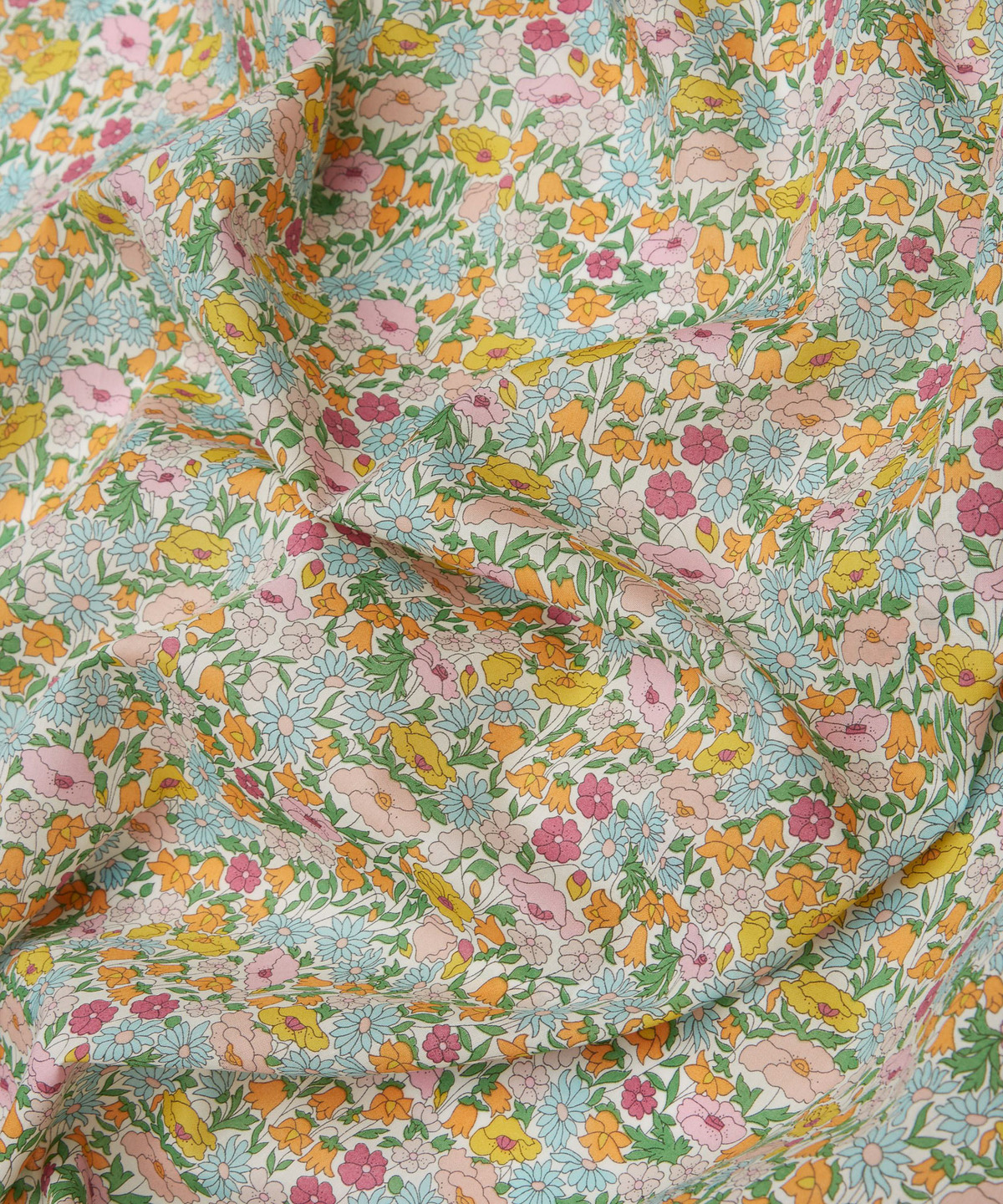 Célèbre marque Anglaise de tissu, Liberty Fabrics est mondialement célèbre pour ses impressions fleuries. La qualité “Tana Lawn” étant la plus connue. C’est une batiste fine, 100% coton, tissée serrée avec un toucher doux et léger comme de la soie.
